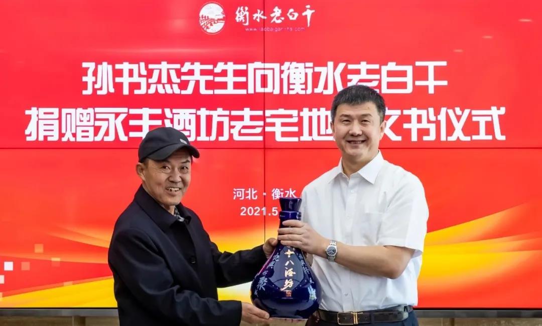 王占剛總經(jīng)理代表衡水老白干向?qū)O書杰先生回贈十八酒坊大壇酒